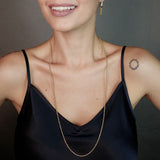 - 86-91 cm, lunghezza collana "D" (86 cm di catena più 5 cm di estensione). Perfetta da indossare lunga o raddoppiata.
