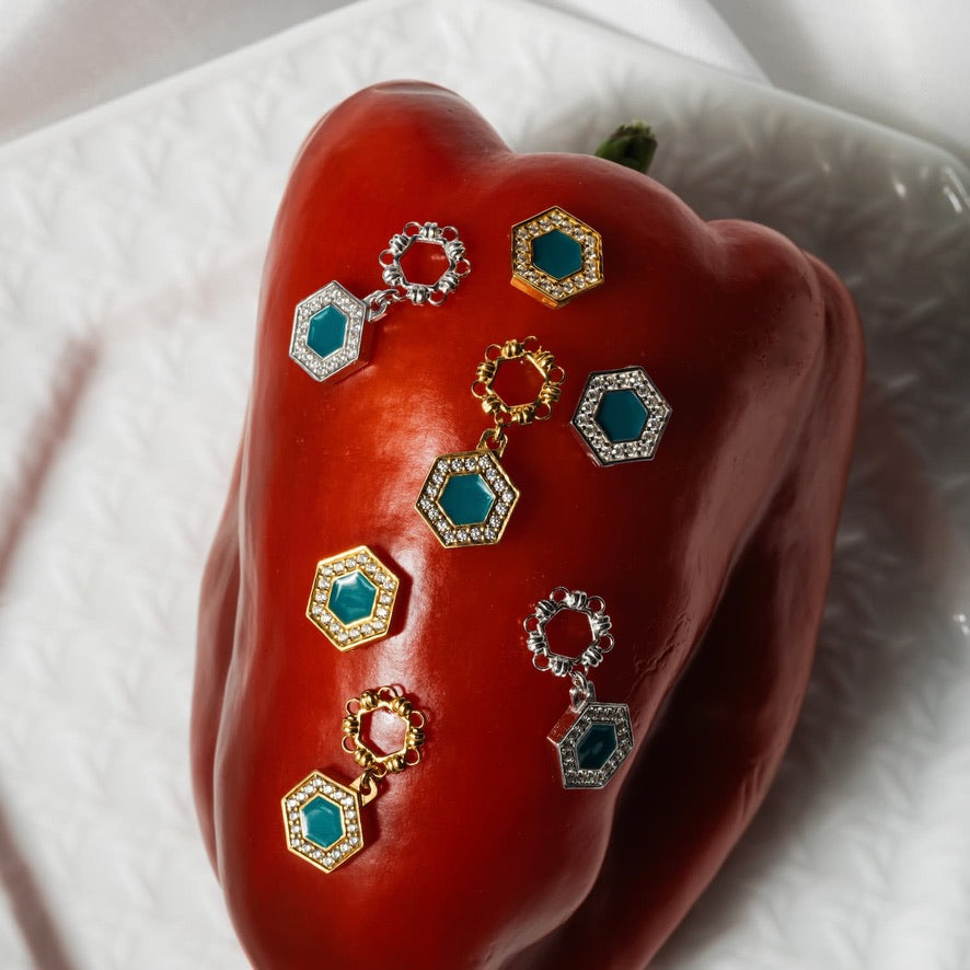 Orecchini Deco Statement in Oro con Verde & Pavé