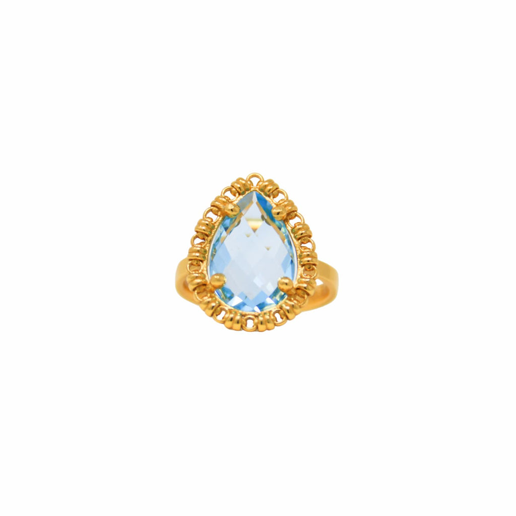 Anello Goccia in Oro con Topazio Azzurro, Piccolo