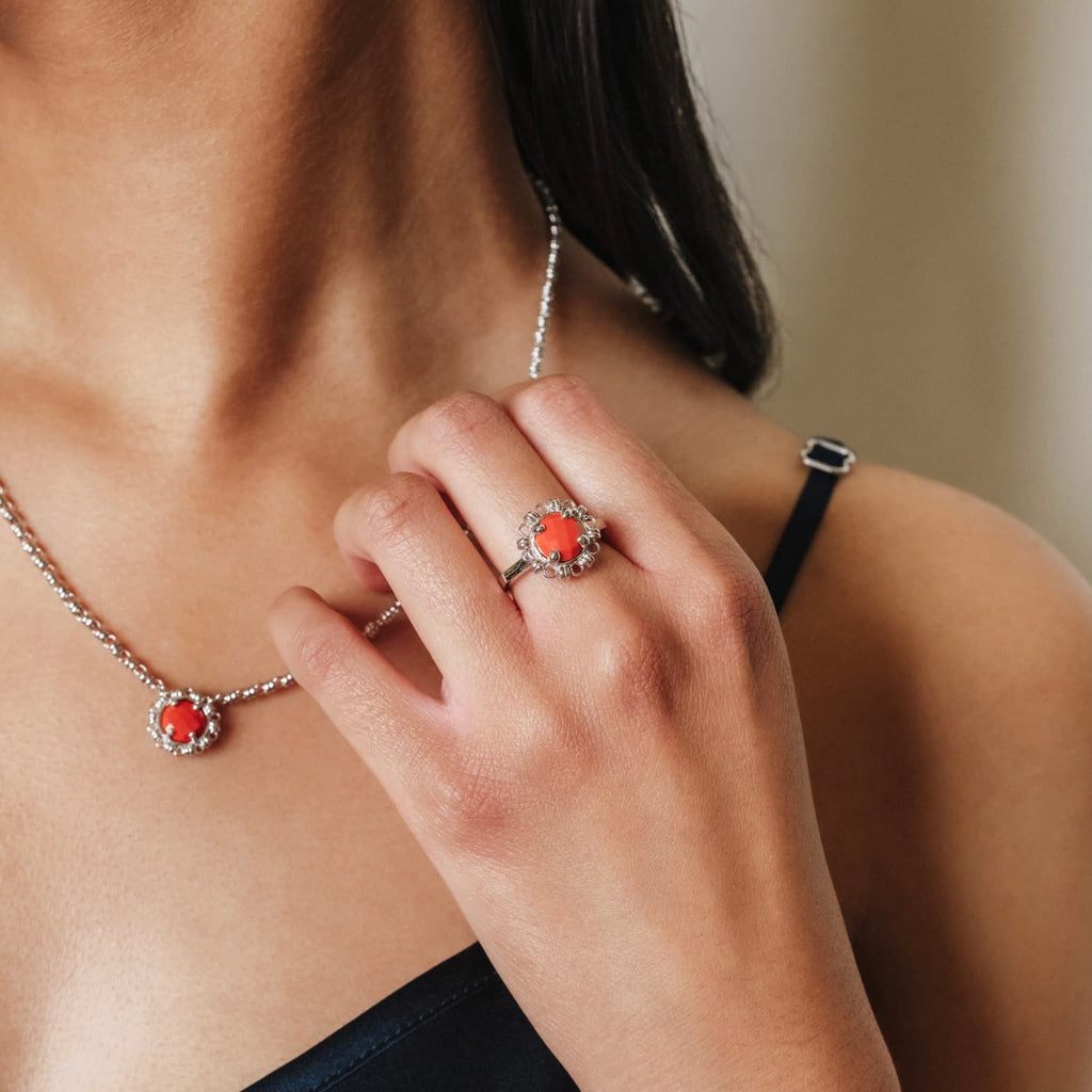Anello Gemma in Rodio con Corallo