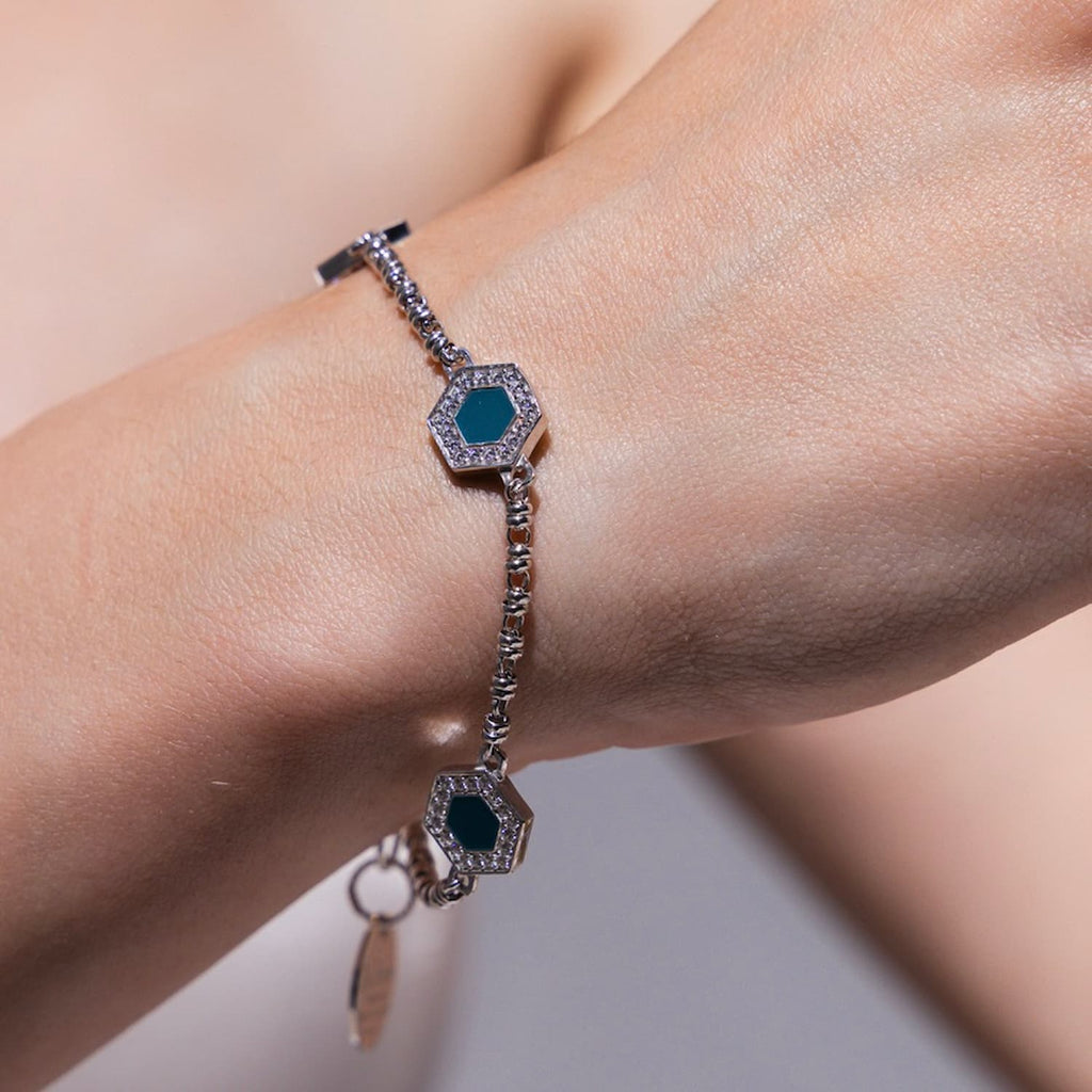 Bracciale Deco Statement in Rodio con Verde, Bianco & Pavé