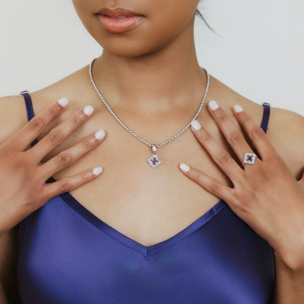 Pendente Quadra in Rodio con Ametista, Piccolo